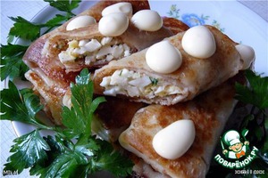Выкладывать по 1 ст. л начинки в готовые блинчики завернуть конвертом и обжарить.
