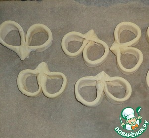 Выкладываем завитки на противень и выпекаем в духовке до готовности. Готовые завитки остудить.