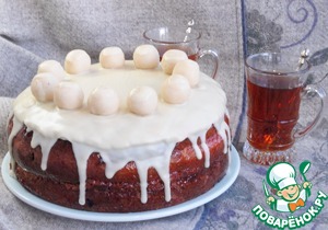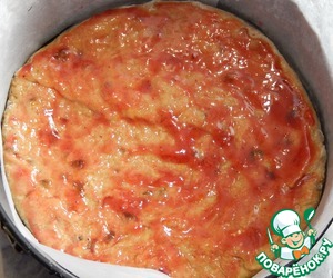 Горячим торт вынимаем из формы, обмазываем джемом. Даем остыть.