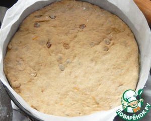 Раскатываем в круг вторую половину теста, укладываем поверх марципана., накрываем форму пленкой и отправляем отдыхать в теплое место на 1 час.