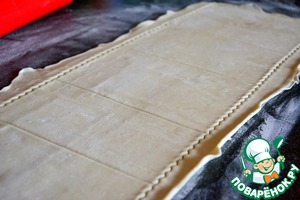 Готовое слоеное тесто разморозить, немного раскатать скалкой и разделить на 7 частей