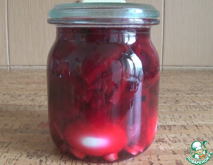 Дорогие поварята, сегодня только пятница и вы вполне успеваете приготовить к пасхальному столу оригинальную, пряную, красочную закуску - маринованные яйца в свекольном соке.