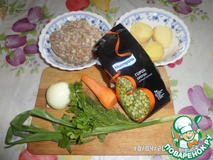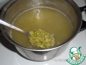 Горох промываем. Наливаем в кастрюлю холодную воду, кладем промытый горох и ставим варить. Как только закипит, убавляем огонь и варим минут 20-30.