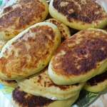 У меня получилось 24 штуки, ну, или делаем, жарим, снова делаем и жарим. Сверху зразы также притрухиваем мукой обязательно. У меня лежали они долго и некоторые все же пристали к коврику, но ничего страшного в этом нет. Формируем снова и кладем на сковороду. Никакого растительного масла при лепке не используем, если тесто не формируется, прилипает, насыпаем муку на стол и постоянно окунаем руки в муку. Лишнюю муку можно убрать непосредственно перед тем, как выкладывать зразы на сковороду. -