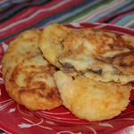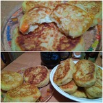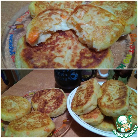 Расскажу свои небольшие хитрости, как я делаю пюре и начинку. Я варю картофель и морковку в мундирах, потом охлаждаю (я, например, вчера сварила и на ночь оставила), очищаю и уже потом натираю на мелкую сырную тёрку. Идеально, когда надо израсходовать много маленькой картошки. А начинку в зразы я делаю такую - беру фарш куриный+соль+специи+зелень и жарю небольшие плоские котлетки - размером с перепелиное яйцо. И вот эти котлетки и заворачиваю в картофельное тесто. А чтобы все зразы получились одинаковые, то тесто делю на порции ложкой для мороженного. Фото после первого раза не прикрепляю, потому как не успела) после обеда осталась только пустая тарелка!!! во второй раз "отжала" половину порции зразов для фото, а потом уж отдала кушать))) Во второй раз тесто делала без моркови и добавила специи прованские травы. Ещё раз Благодарность автору рецепта!!!