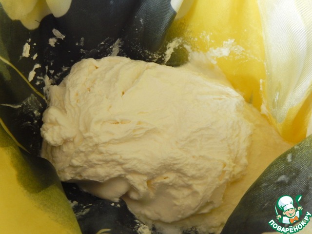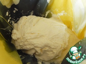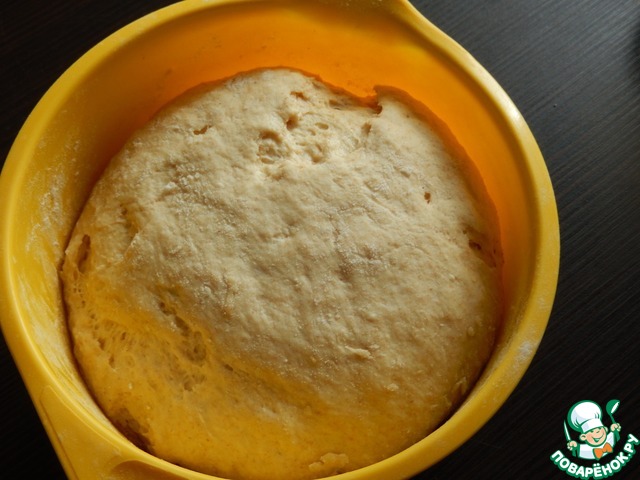 По тихоньку вводим муку. Вымешиваем элатичное мягкое тесто. Оно слегка должно липнуть к рукам. Оставляем тесто на расстойку.