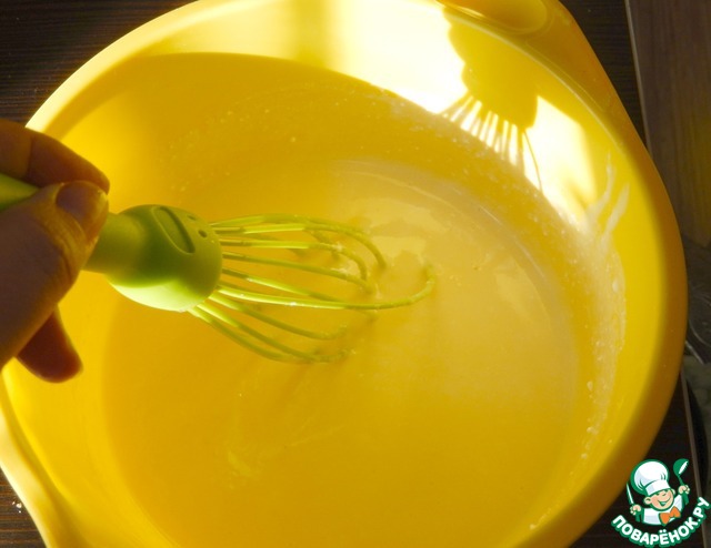 Утром готовим тесто, за 1час до взамеса вынимаем творог и яйца из холодильника что бы они прогрелись до комнатной температуры. Отмеряем 100мл сыворотки, добавляем к ней сахар, и подогреваем немного в микроволновке. Затем всыпаем в теплую сыворотку дрожжи.