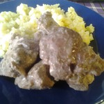 Затем к печени и луку добавить сметанно- горчичную смесь, проверить на соль и специи, все перемешать