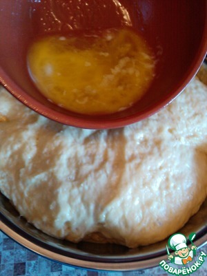 Сделать острым ножом небольшой надрез крест-накрест. Смазать яйцом