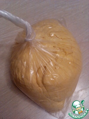 Тесто положить в пакет и убрать в холодильник на 5-6 часов