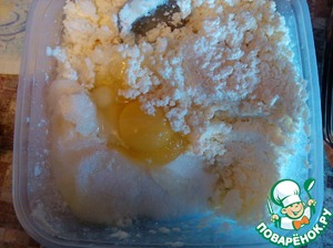 Для начинки смешать творог, яйцо, сахар и ванилин. Если творог жидковатый - добавить манку