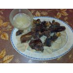 Зальем теперь мясо соусом. Посолим слегка. Можно добавить еще специи для мяса. Оставим мясо мариноваться на час.