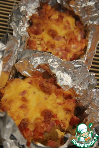 Сверху посыпаем тертым сыром и отправляем в духовку на 15-20 минут запекаться при температуре 200С, до золотистой корочки сыра.