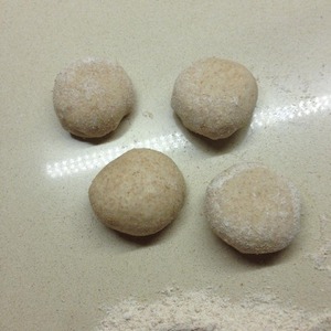 Тесто делим на 12-14 частей и ладошками рук округляем...