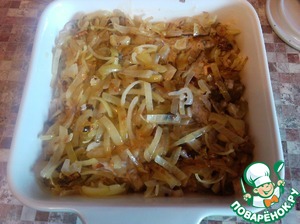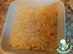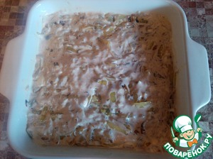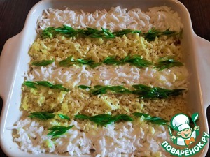 Верх посыпаем натертыми на терке яйцами и по-желанию зеленым лучком.