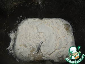 Выливаем настоявшуюся опару в хлебопечку.
