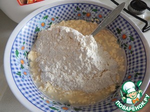 Постепенно всыпаем муку, частями, размешивая до однородной консистенции.