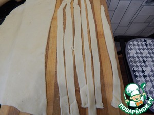 Нарезаем пласт на узкие, ровные и длинные полоски.