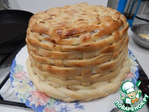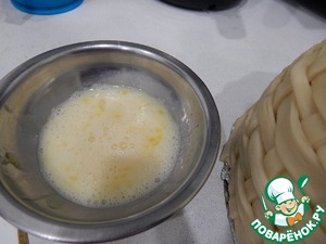 Смазываем корзинку взбитым яйцом и выпекаем в духовке до появления румянца.