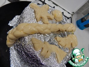 Смазываем яйцом фигурки.