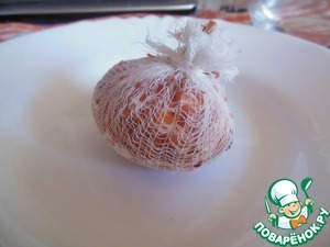 Завязываем, разравниваем шелуху, лишнее от марли отрезаем.