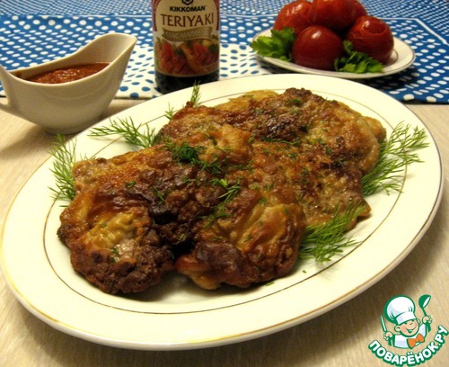 - Соус (Терияки "Киккоман". 1 ч.л. в кляр + для маринования отбивных)