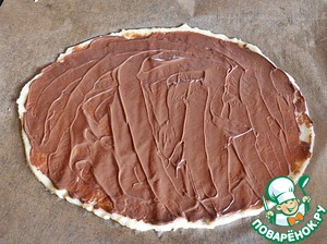 Раскатать ещё одну часть и так же вырезать овал, прикрыть первый овал, намазанный " Нутеллой"