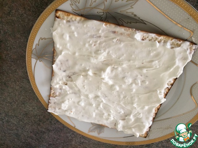 И сразу смазывать кремом ( иногда я посыпаю немного грецких орешек в слои)