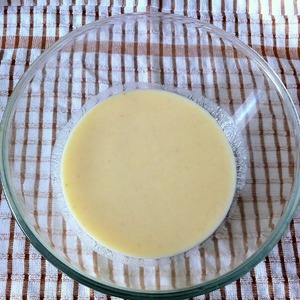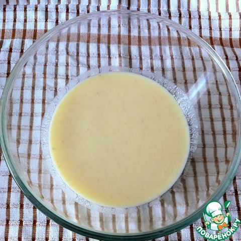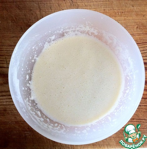 Блинное тесто Вы можете приготовить любое. Я смешала яйцо с мукой, солью и сахаром. Затем постепенно ввела молоко.