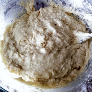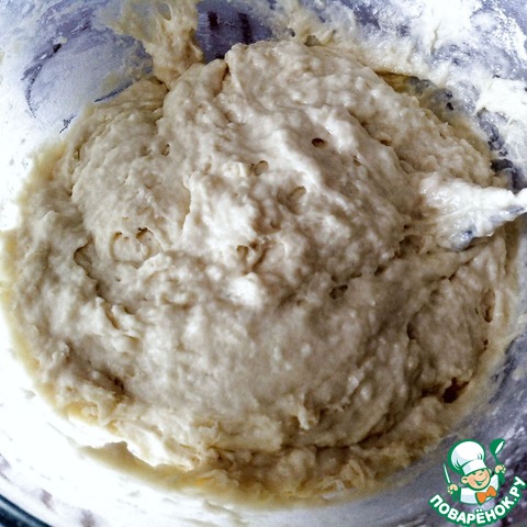 Вымешиваем тесто не менее 5 минут. Убираем в тёплое место для расстойки.