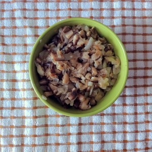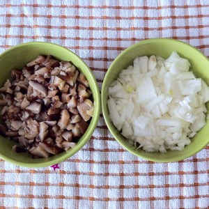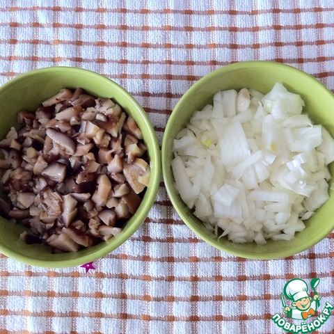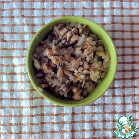 Грибы и лук обжариваем отдельно друг от друга, затем смешиваем.