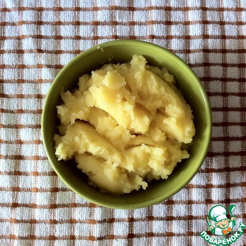 Картофель отвариваем и делаем из него пюре со сливочным маслом и яйцом. Солим по вкусу.