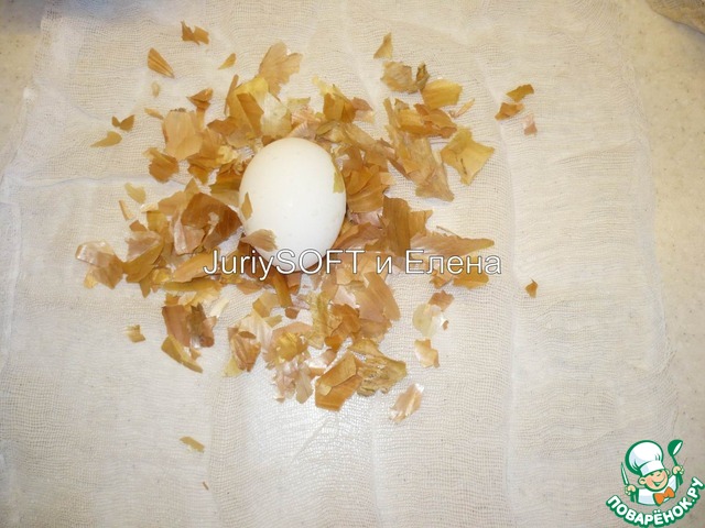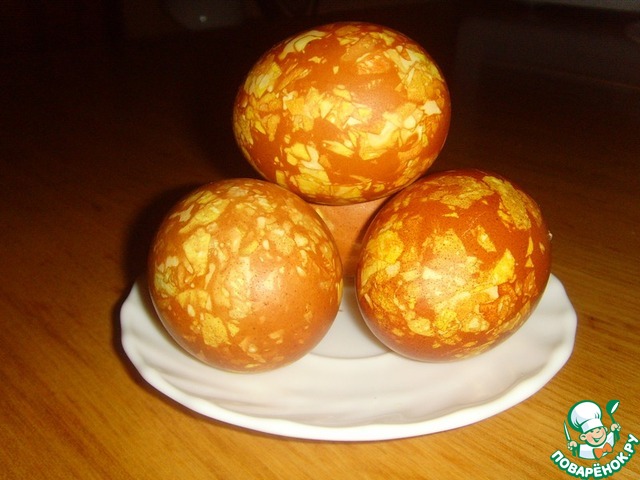 Рецепт «Яйца пасхальные в луковой шелухе "Мраморные"»: