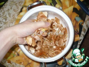 • Луковую шелуху я превращаю руками в среднюю крошку.