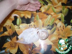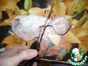 • Руками я подсобираю края марли и у меня получается мешочек. Когда я делала "мешочек", то луковую шелуху старалась равномерно распределить по всему яйцу.