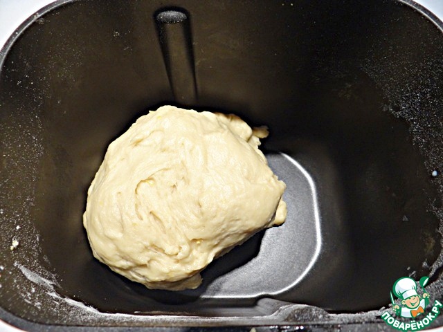 Ведерко помещаю в хлебопечку, включаю режим замеса теста.