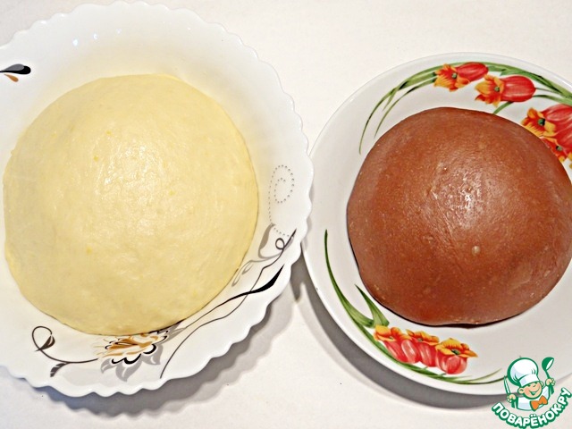 Получается очень приятное в работе тесто. Выкладываю белое и коричневое тесто в разные миски.