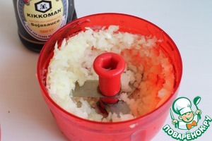 Измельчaeм лук, имбирь и чеснок. Можно натереть это все на терке.