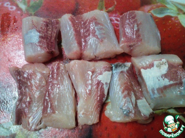 • Рыбу разделываем на филе, примерно по 100 гр. (у меня карп), но лучше брать филе морской рыбы готовое, мне карпа привезли - пришлось разделывать