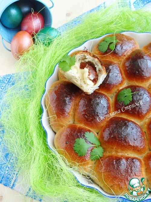 Предлагаю приготовить булочки с ароматом прованских трав и чеснока, с начинкой из вяленых томатов и плавленого сыра. На сайте есть похожий рецепт, надеюсь, Вы примете и мой вариант.