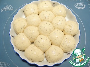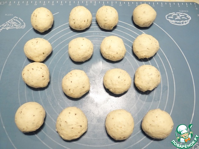 Из каждого кусочка теста формую шар, накрываю тесто пленкой и оставляю на 15-20 минут.