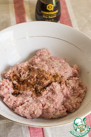 • Влить соевый соус. Посолить и поперчить по вкусу. Хорошо перемешать.