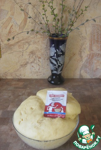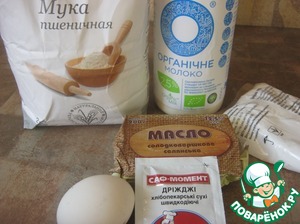 В тёплом молоке растворить дрожжи быстродействующие ТМ "САФ - МОМЕНТ ", добавить йцо, растопленное масло, сахар и муку. Замесить мягкое тесто и оставить на час подойти