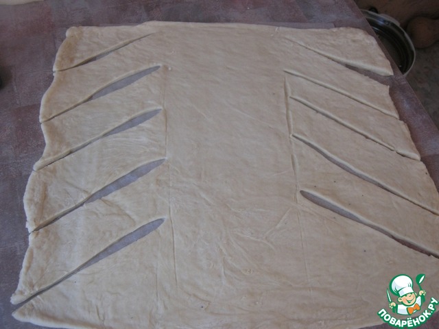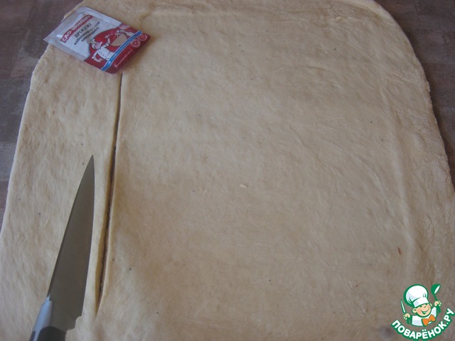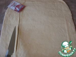 Раскатать тесто и вырезать прямоугольник (ориентируясь на противень).. я вырезаю по размеру разделочной доски