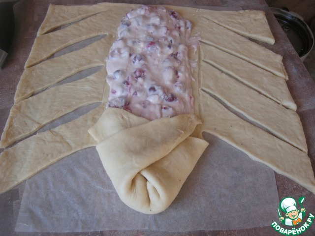 И накрыть её внахлест. Поместить в разогретую до 180гр духовку на 20минут