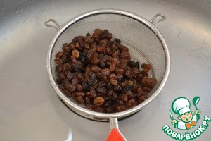 Тщательно промыть изюм.