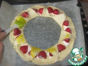 Очень красивый и аппетитный веночек!Просто,быстро, оригинальная формовка. То,что вкусно-без сомнения! Прекрасный рецепт!