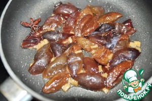 Корень имбиря измельчаем (натираем или мелко режем) и обжариваем одну минуту на растительном масле вместе с анисом и гвоздикой.