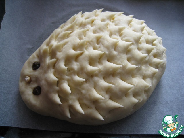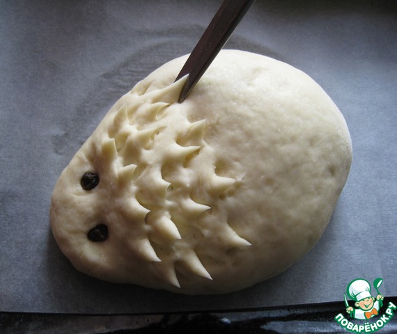 На противне накрываем полотенцем и оставляем подходить. Смазываем желтком и выпекаем в предварительно разогретой духовке при 180 градусах 20-40 минут в зависимости от размеров ёжиков.
