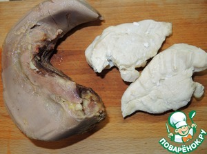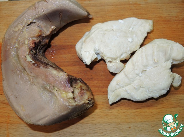 Говяжий язык отварить заранее.